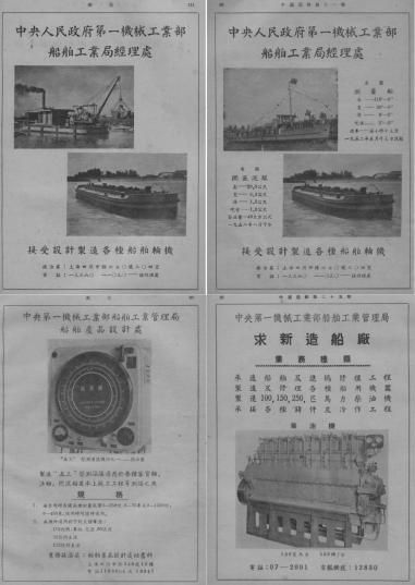 五十年代中期《中国造船》刊登的一批广告,集中反映了船舶局旗下企业的产品成果