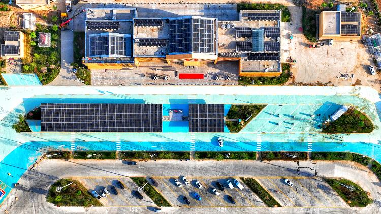 这个充满科技与绿色元素的服务区,已经有了新的名字——金乡零碳智慧服务区。10日,由中国能建葛洲坝交司投资,中国能建广东院、山西电建联合总承包建设的全国首个全路域交能融合项目——山东枣菏高速公路交能融合(源网荷储一体化)示范工程项目(以下简称枣菏高速示范项目)金乡段正式并网发电,金乡零碳智慧服务区同步启用,中国能建交能融合展厅对外开放。枣菏高速金乡段道路旁的片片光伏板沐光而起,风力发电机迎风旋转,随着一声“开始合闸”,汩汩绿能从这里出发,通往千家万户。