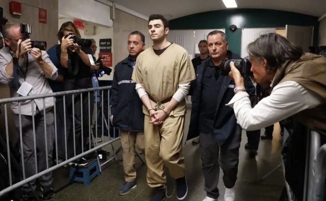 路易吉的入狱,牵动了很多人的心。终于在这个9月,路易吉又公开露面了,他身穿褐色囚服,戴着手铐和脚镣,被押送至纽约曼哈顿州法院出席庭审。