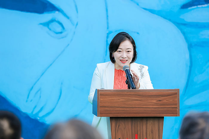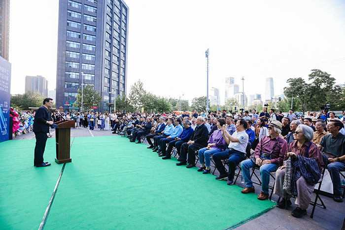 覃川在致辞中表示,从“心向天宇”的展览作品,可以看到刘巨德先生把美从人性和自然的最深处不断的挖掘和展示出来。他传承了清华美院装饰艺术的传统,把西方的现代艺术和中国的传统艺术相结合,在比较中寻找它们的共同点,在相互对话当中探索新的艺术发展方向。刘巨德先生在“为艺”方面“自然纯真、天人合一”,在“为学”方面“无问西东、融会贯通”,在“为人”方面“自强不息、厚德载物”,始终以赤子之心追求艺术理想,为清华美院的艺术教育贡献了独特力量。