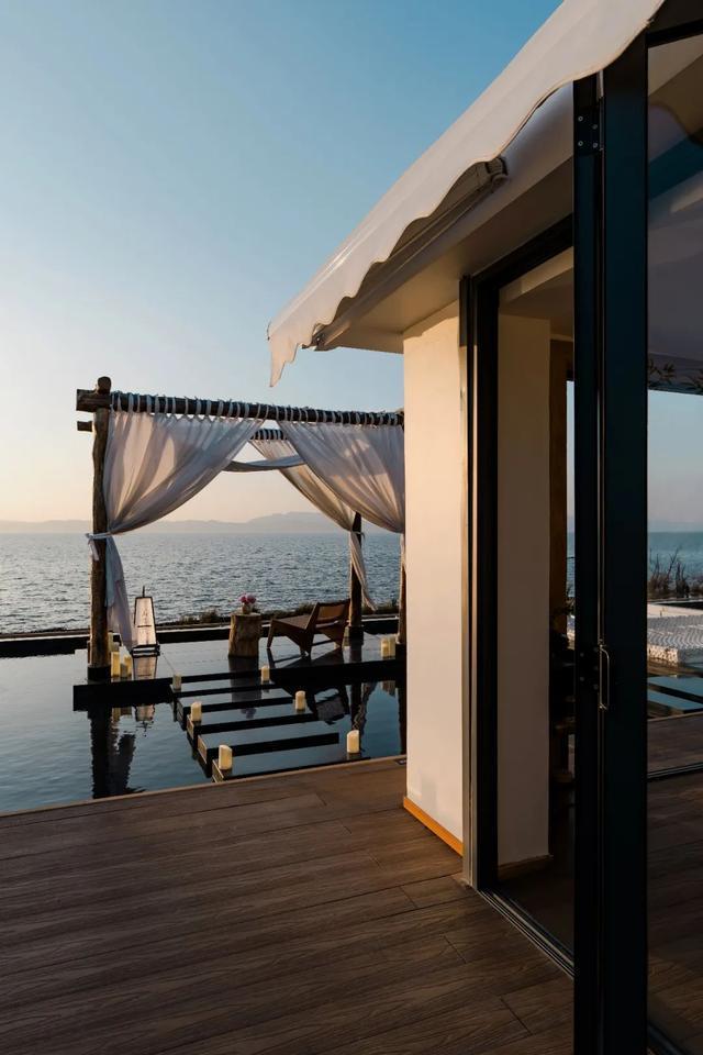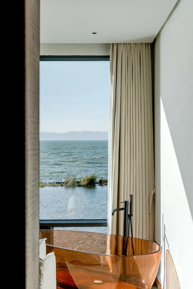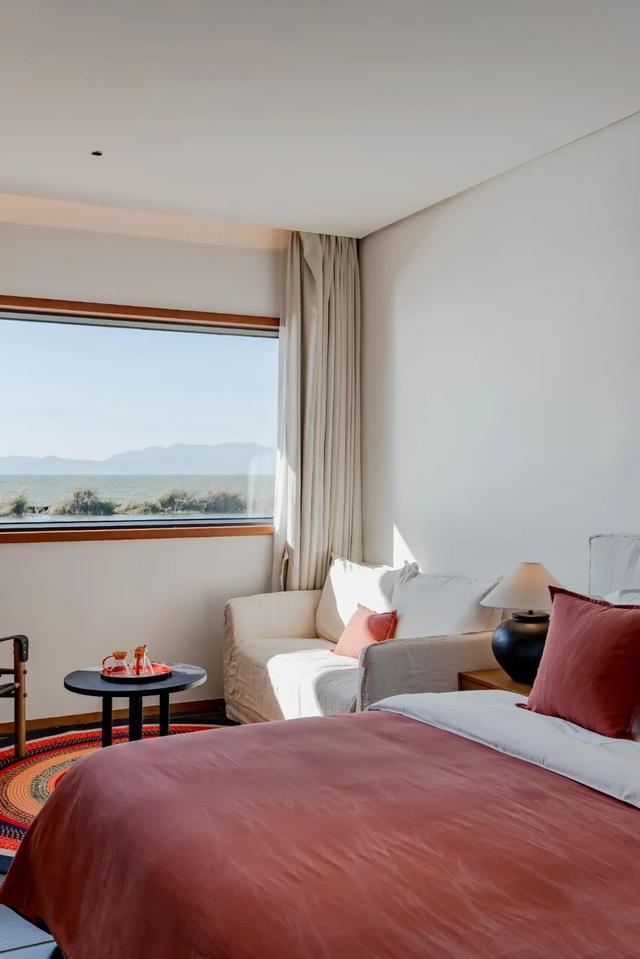 山隐筑位于海晏村,建筑设计简约雅致,空间布局合理,尤其是海景房正对滇池,透过窗户,滇池的柔美壮阔尽收眼底。酒店楼顶的落日观景点更是其一大亮点,游客可以在这里欣赏到夕阳给天空染上橙红、金黄交织的绚丽色彩,感受滇池在余晖映照下的波光粼粼。据了解,自春节前开业以来,民宿每天都是满房状态,足见其受欢迎程度。