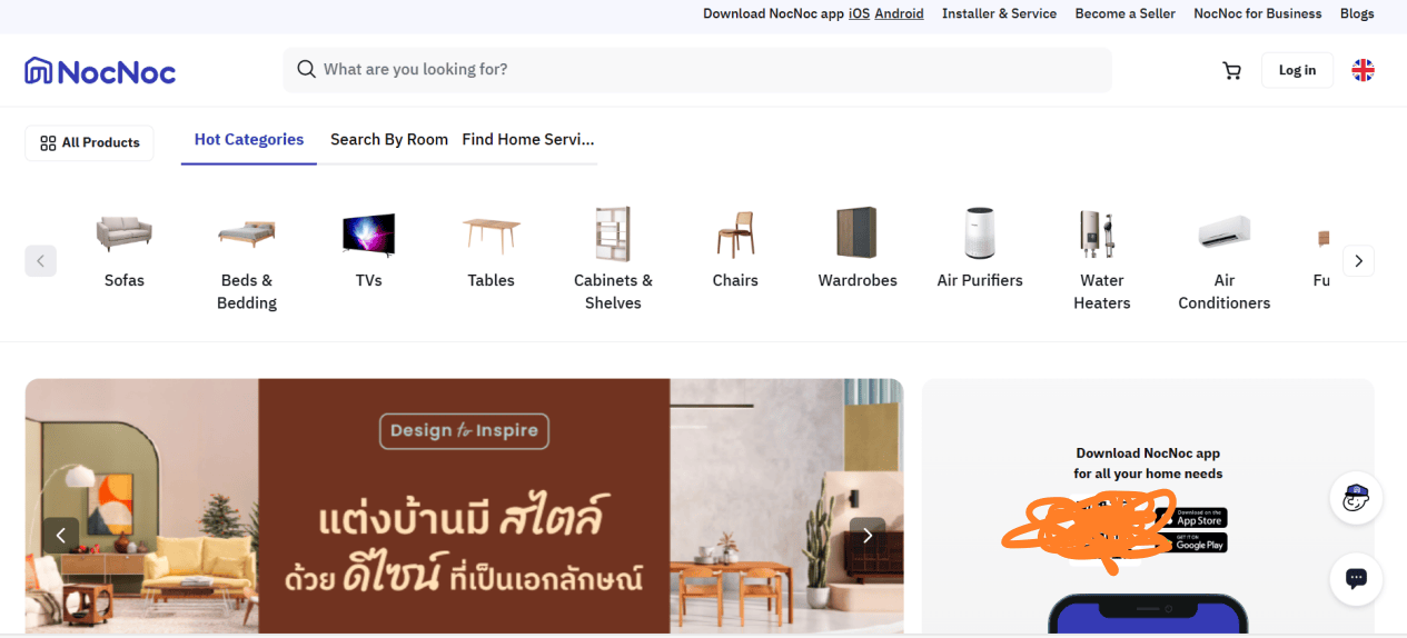到2024年,NocNoc平台已汇聚来自泰国全国6000家店铺的90多万种产品和服务,涵盖小型、大型及本地各类商家,品类包括家具、家居装饰、电器、家居维修设备、生活方式产品以及宠物相关用品等。