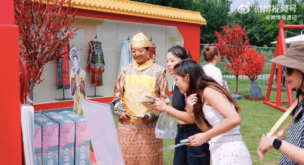 走进奇遇小镇的沉浸式体验和IP主题展区,仿佛掉进了打破次元的“兔子洞”,追星从“远距仰望”变成了“沉浸逛玩”。你可以坐在《甄嬛传》的秋千上,被扮成皇帝的NPC考问“甄嬛体”十级考题;站在《藏海传》复刻的茶船前,和主演立牌拍一张“穿越照”。通过直接深入偶像明星的影视作品之中,让粉丝从“观看者”变为“剧中人”,进一步拉近了星粉之间的距离。