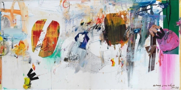 王衍成,“一位移走了地平线的魔法师”。以延展的空间与偶发的实体间的共生性来构建画面释放能量。他追求灵魂的永生与无限刹那的能量,作为艺术家的生命载体,这种观念深受量子力学启发,将科学思维融入艺术表达。
